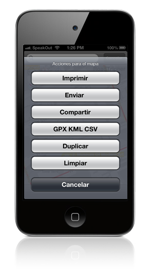 - Compartir* - en la Versión Completa - para enviar una copia del mapa que se puede abrir directamente desde la app MAIL en Plan de Ruta